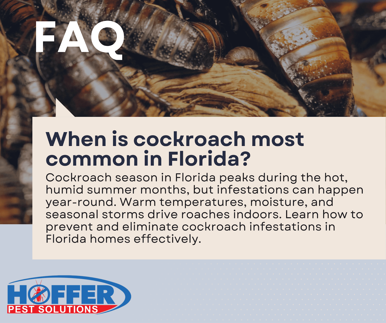 Cockroach season in Florida peaks during the hot, humid summer months, but infestations can happen year-round. Warm temperatures, moisture, and seasonal storms drive roaches indoors. Learn how to prevent and eliminate cockroach infestations in Florida homes effectively.
