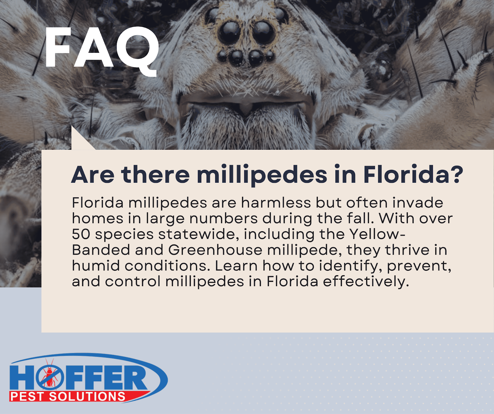 Florida hosts more than 50 different millipede species. The good news? Most of them are harmless. The not-so-good news? A few, particularly the flat-backed and yellow-banded varieties, can invade homes and structures in large numbers during specific times of the year, especially after rain or during the fall season.