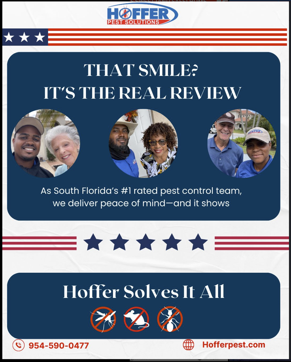 There’s a reason families and businesses from Fort Lauderdale to Boca Raton choose Hoffer Pest Solutions over national chains and out-of-state providers.