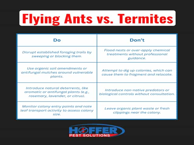 The best way to know for sure is to inspect the waist, wings, and antennae, or better yet, call in an expert who can identify the species on sight. A quick inspection by a licensed pest control company like Hoffer Pest Solutions can determine whether you’re dealing with ants, termites, or both, and recommend the appropriate next steps.